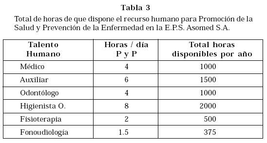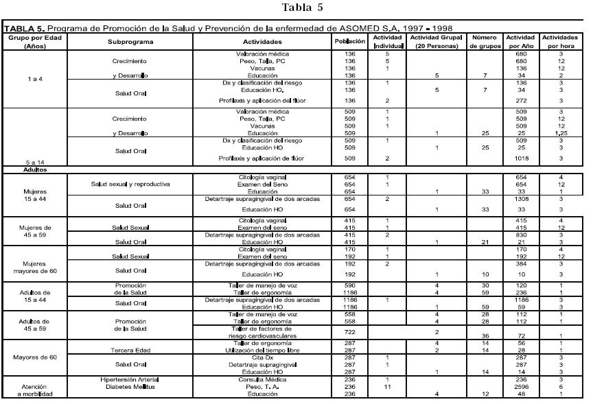 Toda esta información se encuentra detallada en la Tabla 5. En ella se resumen todos los programas de Promoción de la Salud y Prevención de la Enfermedad que se llevarán a cabo durante el primer año en la E.P.S. Asomed S.A.