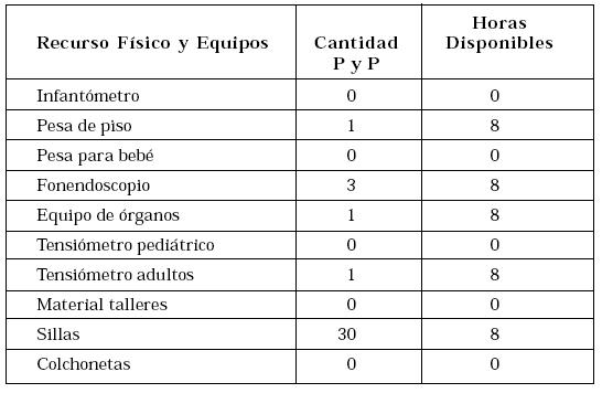 La mayor frecuencia anual se presenta en valoración médica y toma de peso y talla con 680 actividades por año cada una; la mayor frecuencia la presentan los talleres de educación con 34 actividades por año. La mayor frecuencia hora la tienen la toma de peso y talla y las vacunas con 12 actividades por hora. El total de horas requeridas oscila desde 11 para las vacunas hasta 227 para la valoración médica, lo cual ratifica la mayor frecuencia anual en esta actividad.