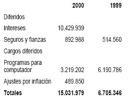 Ajustes por inflación: El patrimonio, los activos y pasivos no monetarios han sido ajustados por inflación, que para el 2000 fue de 8.77%.