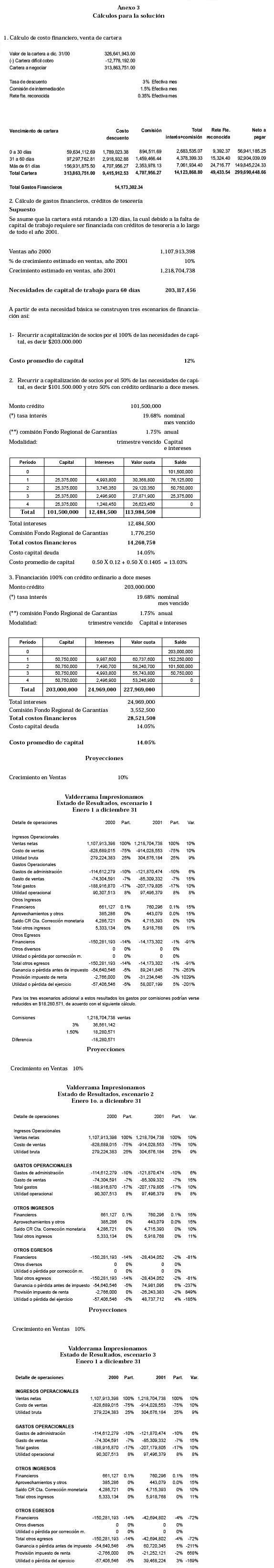 De seguir así las cosas, dudo mucho que nuestra empresa logre subsistir, pues nuestra cartera cada vez rota menos y los gastos financieros nos van a llevar a la quiebra. Eran las palabras de uno de los socios de Valderrama Impresionamos, al analizar los estados financieros de su organización al cierre contable del año 2000.