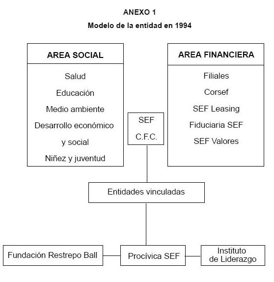 Financieramente, la entidad debe generar los recursos necesarios para cumplir los objetivos sociales de la Fundación considerados en sus estatutos, con un crecimiento superior de la economía, dentro de los más estrictos valores institucionales, proporcionando servicios en un marco de alta competitividad, debe utilizar eficientemente su personal y los mejores recursos tecnológicos con el fin de garantizar un liderazgo permanente que asegure un constante fortalecimiento y desarrollo institucional y que a su vez avale el cumplimiento de los fines sociales. A través de esta estrategia la Fundación, anticipándose al concepto de banca múltiple, en la modalidad o esquema de filiales de servicios financieros, prevista en la Ley 45 de 1990, ha conformado: