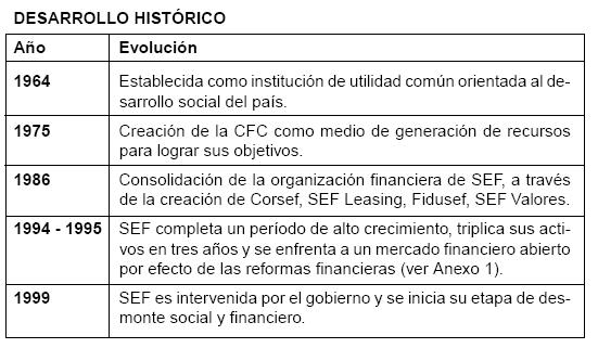 Para 1998, la SEF, al igual que la mayoría de entidades financieras del país, fue afectada por el incremento de la cartera vencida y los activos improductivos, lo cual golpeó seriamente su balance. Los efectos de la crisis empezaron a sentirse: deudores que no pagan, o pagan con bienes invendibles, retiro de ahorradores, disminución en nuevas aperturas de CDT, menores ingresos por cartera versus iguales gastos, provisiones de cartera progresivas.