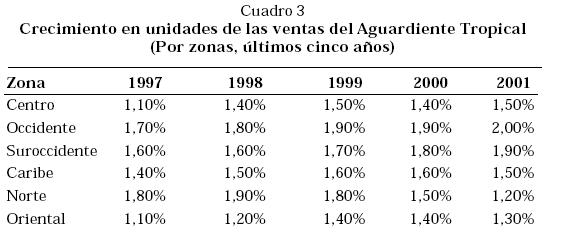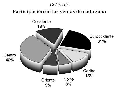 El crecimiento en cada una de las zonas es diferente, esto se debe a las actividades de cada gerente de zona y a las acciones de una competencia muy agresiva.