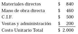 El costo unitario del producto A es de $2.000, como se muestra a continuación:
