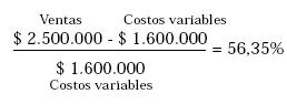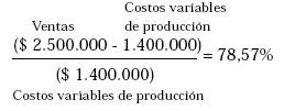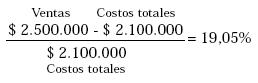 Así las utilidades objetivo son el 19.0476% de los costos totales o $ 400.000. Por tanto, si hablamos de 10.000 unidades anuales, el precio de venta será de $ 250 por unidad. Los costos totales de $ 210 por unidad y un margen unitario de $ 40, o sea del 19,05% del costo total.