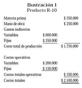 Vamos, a manera de ejemplo, para el producto R-10, en la ilustración No. 1, que con un volumen de 10.000 unidades nos sirvió de base.