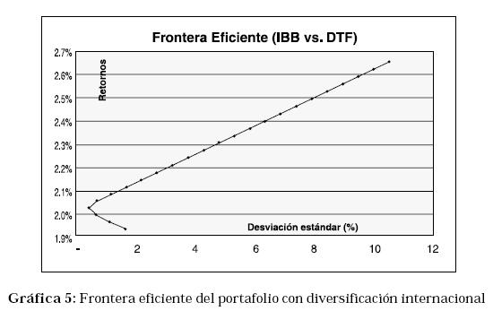Por lo tanto, el hecho de que la frontera eficiente de portafolio diversificado internacionalmente se encuentre por encima de la frontera eficiente con diversificación doméstica, proporciona una gran ventaja a los inversores.