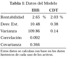 La Tabla 1 ilustra los datos requeridos por el modelo de Markowitz para estimar la frontera eficiente.