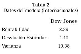 Para la aplicación del modelo al caso colombiano se tomó para el portafolio de instrumentos domésticos -el portafolio nacional- el conjunto de acciones colombianas representadas por el Índice de la Bolsa de Bogotá (IBB), y para el portafolio ampliado -el portafolio internacional- el conjunto de acciones norteamericanas representadas por el Índice Norteamericano Dow Jones.