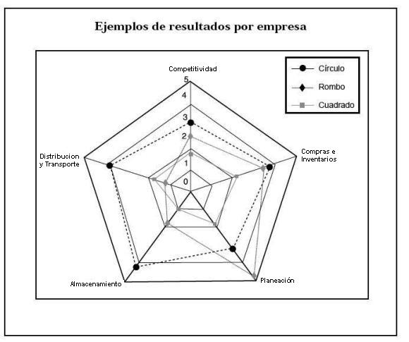 Los resultados de una empresa consisten en un diagrama de radar, en el cual se muestra el estado actual de la empresa, como se puede apreciar en la gráfica.