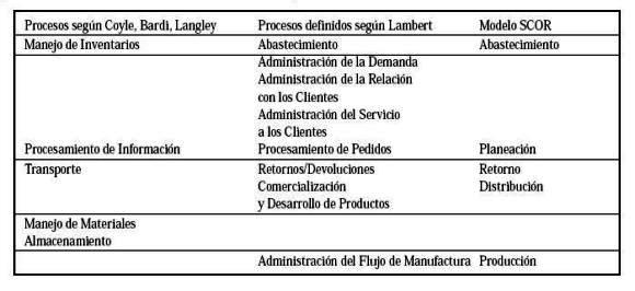 Se realizó un análisis comparativo de los procesos logísticos presentados por los autores más representativos en el tema de cadena de abastecimiento en el mundo, así como los procesos descritos en el modelo SCOR (Supply Chain Operations Reference Model) establecido por el Supply Chain Council para empresas grandes.