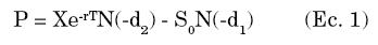 5. σ: La volatilidad del activo subyacente. La fórmula derivada por Black-Scholes para un Put es: