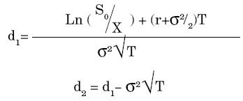 Donde N(.) es la distribución normal acumulada y d1 y d2 vienen dados por los siguientes términos: