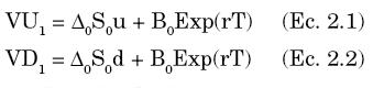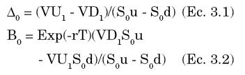 Sean Δ y B el número de unidades del activo subyacente y del bono libre de riesgo que componen el portafolio respectivamente. Es importante notar que el valor actual de cada bono es igual a 1. Para cada estado se debe cumplir que: