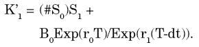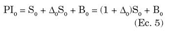 Donde el primer término designa al valor que toma en el período 1 la inversión en acciones al multiplicar el número de acciones que se compró en el período 0 por su precio actual y el segundo término al valor de los bonos habiendo transcurrido un período desde su compra, en el supuesto de cambios en la tasa de interés.