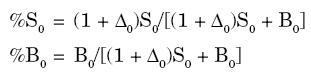 Este es un sistema de dos ecuaciones con dos incógnitas: los valores de Δ0 y B0. Despejamos las incógnitas y encontramos que