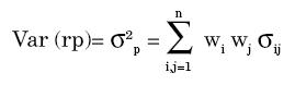 Donde wi y wj son los pesos de las acciones i y j respectivamente y σij es la covarianza entre la acción i y la acción j, cuando i = j el término se refiere a la varianza.