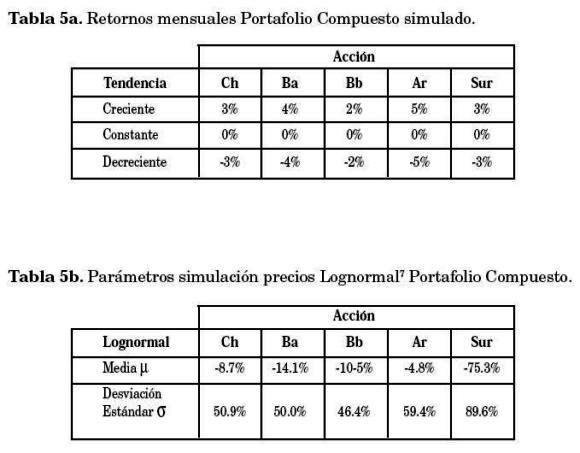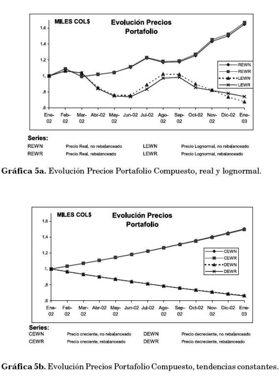 La Gráfica 5 muestra la evolución del valor de cada portafolio (real y simulado), las características de las simulaciones se presentan en la Tabla 5.