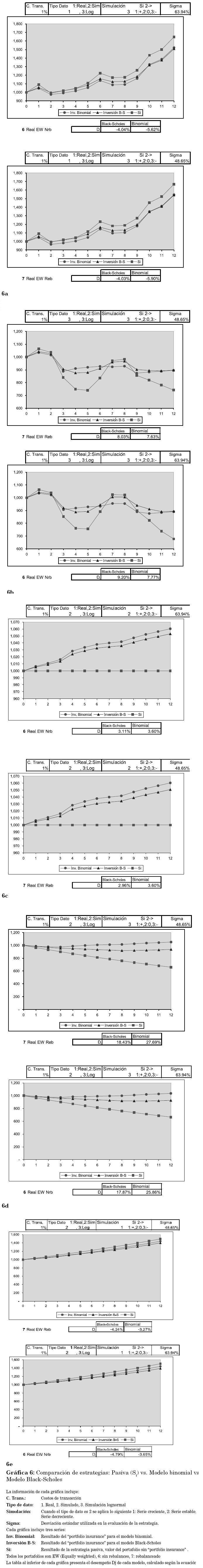 donde j: binomial, black-scholes; vji es el valor del portafolio en el período i con la estrategia j y vsi es el valor del activo subyacente en el período i. Tal medida permite evaluar el desempeño de cada estrategia y compararla con su contraparte.