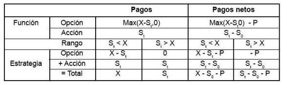 La racionalidad que justifica la compra de una opción como la descrita anteriormente estriba en que se elimina la posibilidad de pérdidas más allá de un nivel pre-establecido por el precio de ejercicio X.