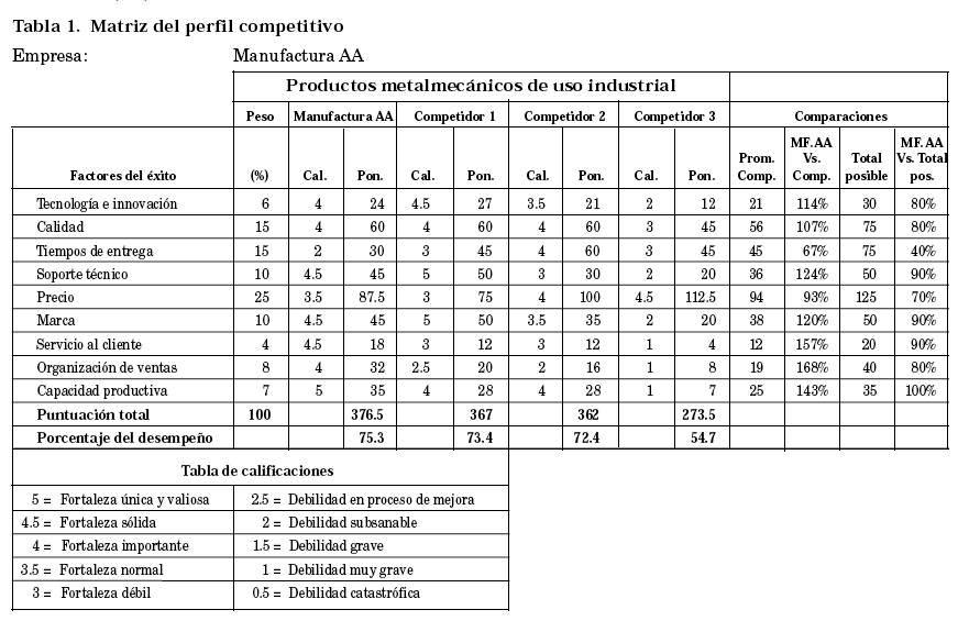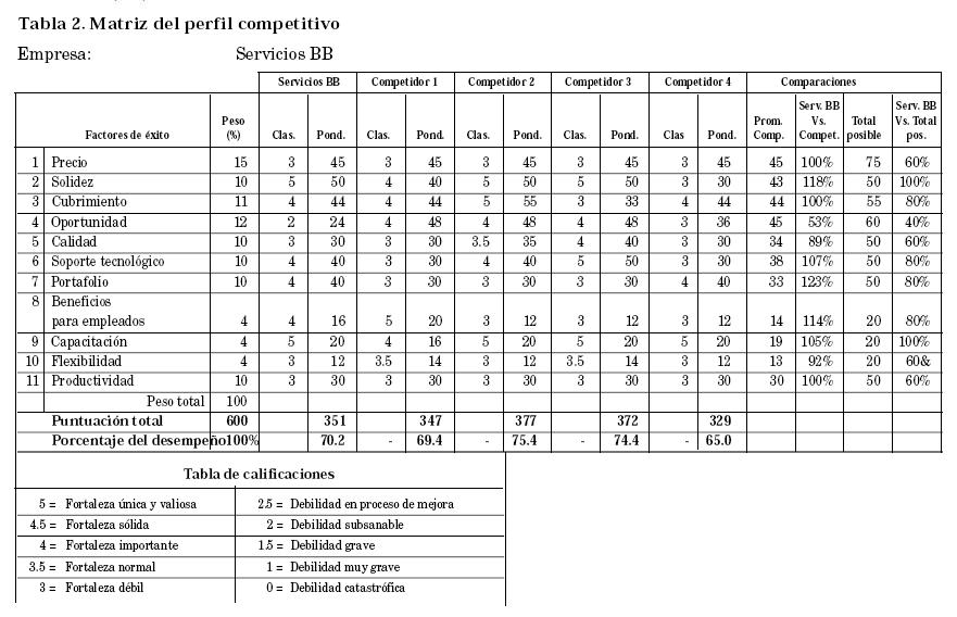 ¿Cuáles son sus necesidades y qué espera de mi empresa? Para alcanzar este conocimiento se empezará por establecer los Factores de Éxito de la industria y se construirá la Matriz del Perfil Competitivo para evaluar la posición relativa de la empresa con relación a sus competidores.