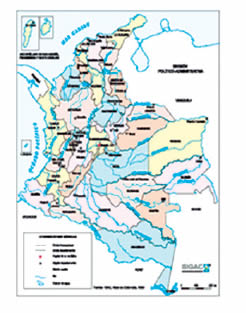 5 São eles: Antioquia, Cauca, Choco, Narino e Valle Del Cauca. Por 'Departamento' entende–se uma subdivisão territorial que possui governador e assembléia eleitos. Cada departamento divide–se em municípios, os quais se subdividem em corrigimientos.
