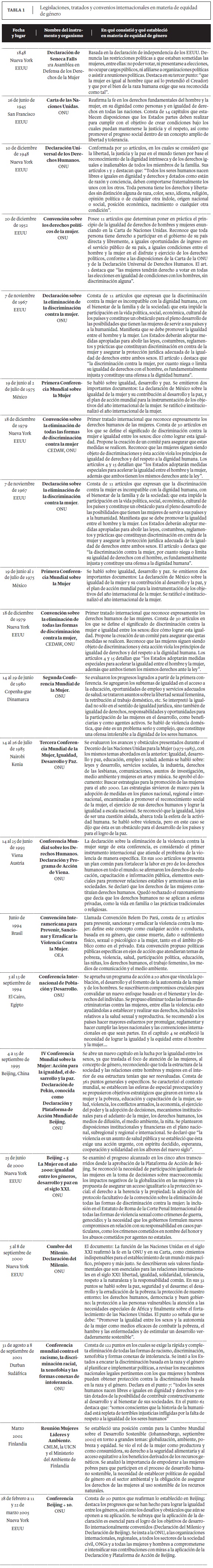 A Convenção sobre a eliminação de todas as formas de discriminação contra a mulher (CETFDCM) define o conceito de igualdade e diz como alcançá-la. As políticas propõem marcos de referência para que vivamos de maneira igualitária, mas, como fazê-lo se a própria sociedade é a que ensina a ser desiguais? Este trabalho oferece um panorama histórico dos avanços e retrocessos em matéria de equidade de gênero. Ao escudrinhar este fenômeno, talvez estejamos chegando mais perto de conhecer uma realidade social que impacta homens e mulheres de maneira diferente. Atualmente se deixam entrever avanços em matéria de equidade de gênero, mas por sua vez se manifestam formas não equitativas que continuam privilegiando os papéis masculinos sobre os femininos.