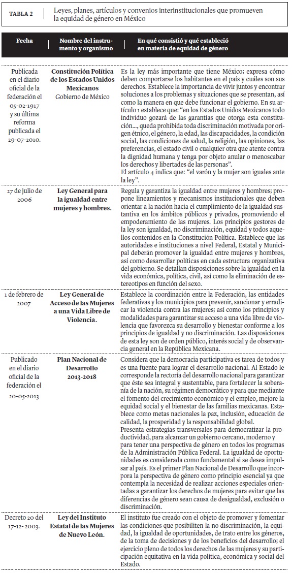 La Convención sobre la eliminación de todas las formas de discriminación contra la mujer (CETFDCM) define el concepto de igualdad y dice cómo lograrla. Las políticas proponen marcos de referencia para que vivamos de manera igualitaria, pero ¿cómo hacerlo si la misma sociedad es la que enseña a ser desiguales? Este trabajo ofrece un panorama histórico de los avances y retrocesos en materia de equidad de género. Al escudriñar este fenómeno quizás nos acerquemos a conocer una realidad social que impacta a hombres y mujeres de manera distinta. Actualmente se dejan entrever avances en materia de equidad de género, pero a su vez se manifiestan formas inequitativas que siguen privilegiando los roles masculinos sobre los femeninos.