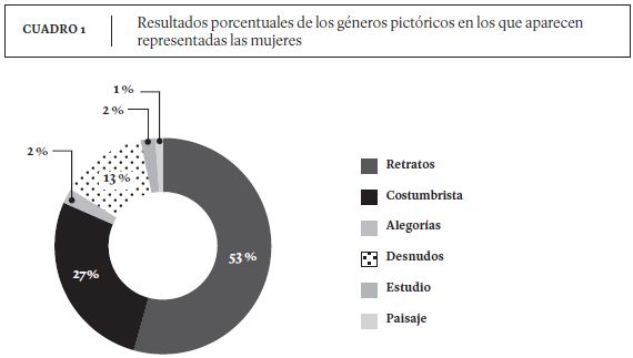 Se analizaron diversas obras que responden a modelos que la sociedad construyó para las mujeres de élite (niñas, jóvenes, adultas, ancianas) y así mismo para las mujeres de otras clases sociales y razas distintas a la blanca. El análisis de estas representaciones inserta la investigación en una de las líneas más actuales de los estudios de género que se ocupa de mostrar cómo las representaciones construyen un universo simbólico que enmarca el significado de lo que se consideraría como lo femenino, en una época determinada.