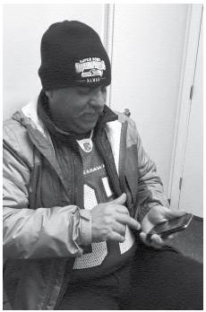 Servando: Cuando primero compré un smart phone no sabía cómo usarlo y perdí un trabajo porque no supe cómo contestar la llamada. Me llamaban y yo sólo tocaba la pantalla así, y no contestaba. Fue sólo más tarde que alguien me dijo que hay que arrastrarlo hacia el lado con el dedo para contestar el teléfono. Ahora ya sé cómo contestar. Es fácil. Todo es fácil cuando uno ya sabe.