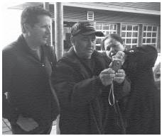 Foto de Ventura con miembros del equipo de investigación mostrándole cómo usar la cámara para Fotohistorias (foto: S. Vannini)