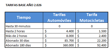 Las siguientes son las tarifas que estarán vigentes